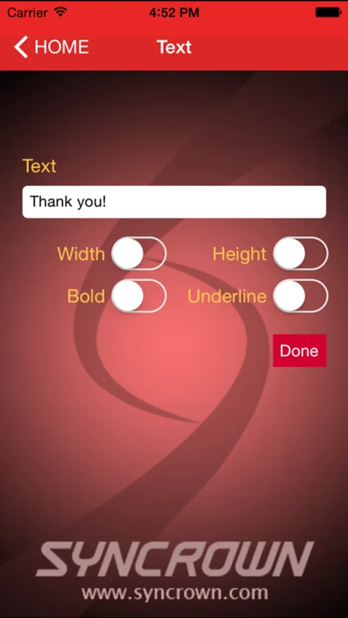 (Print - printing is available as an option with SynCrown's mobile thermal printer which supports BLE interface.)