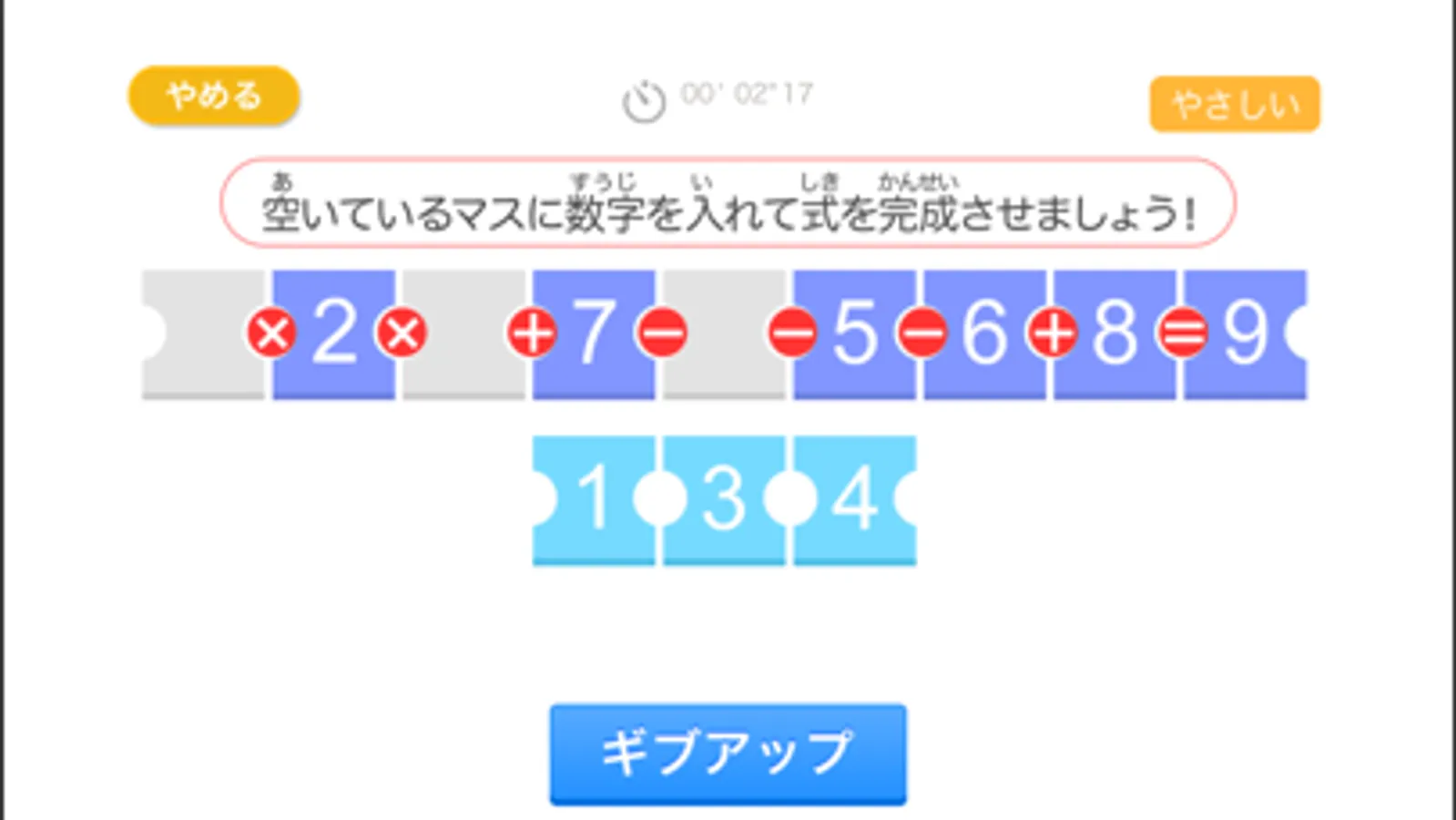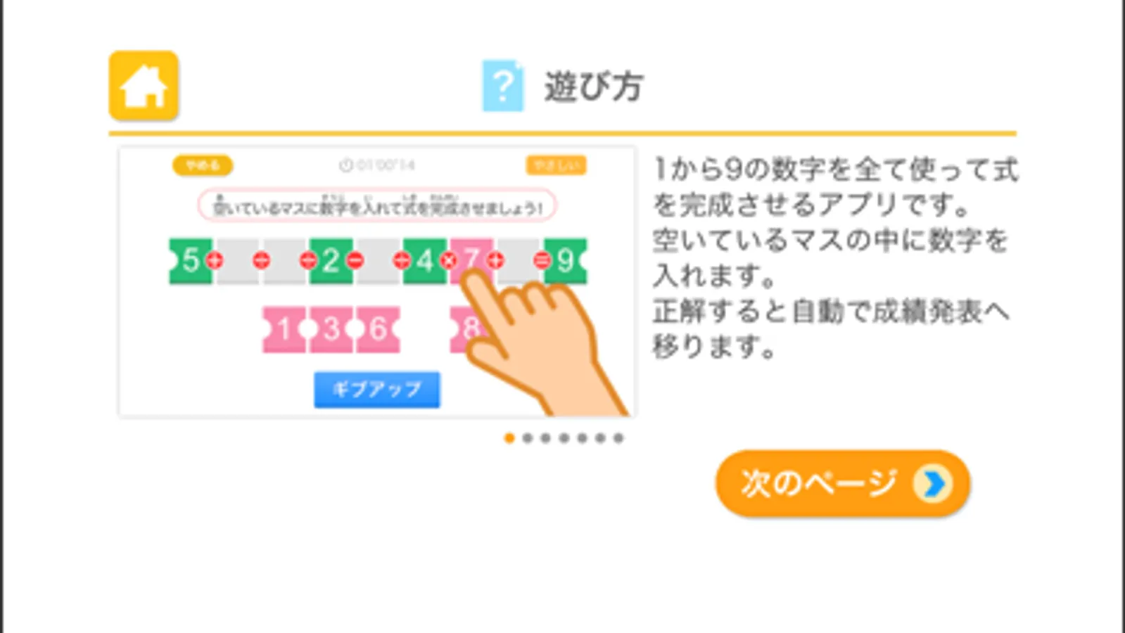 1から9の数字を全て使って式を完成させるアプリです。