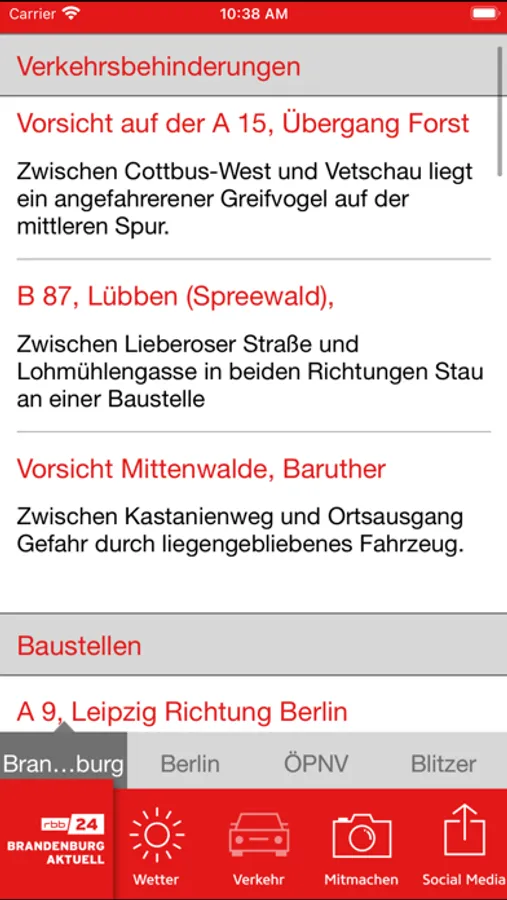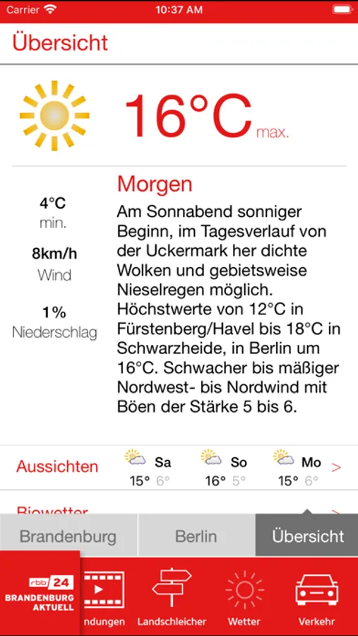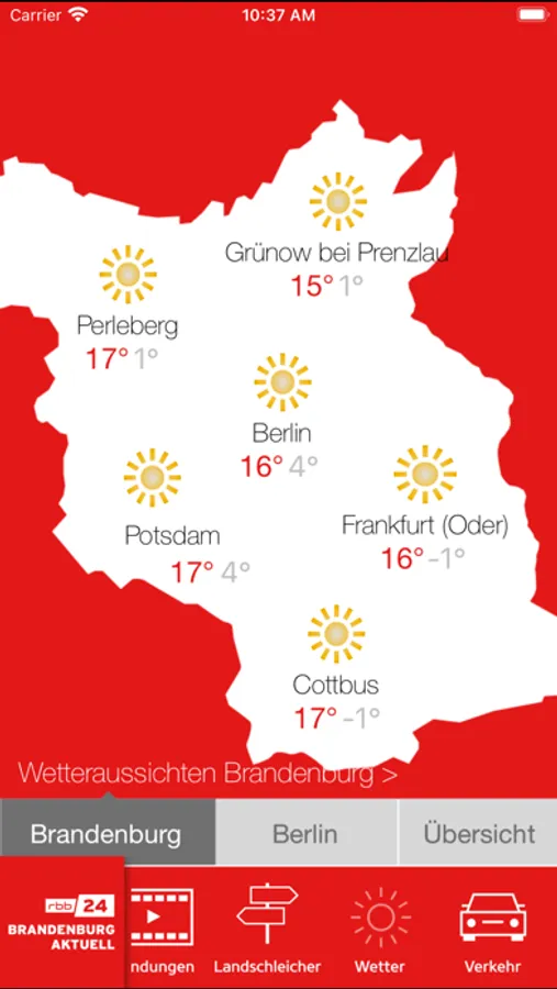 Wetter Die Temperaturen von heute und für die nächsten Tage für Brandenburg und Berlin. Verkehr und Blitzer Die Lage auf Straßen und Schienen in Berlin und Brandenburg – und natürlich Blitzer.