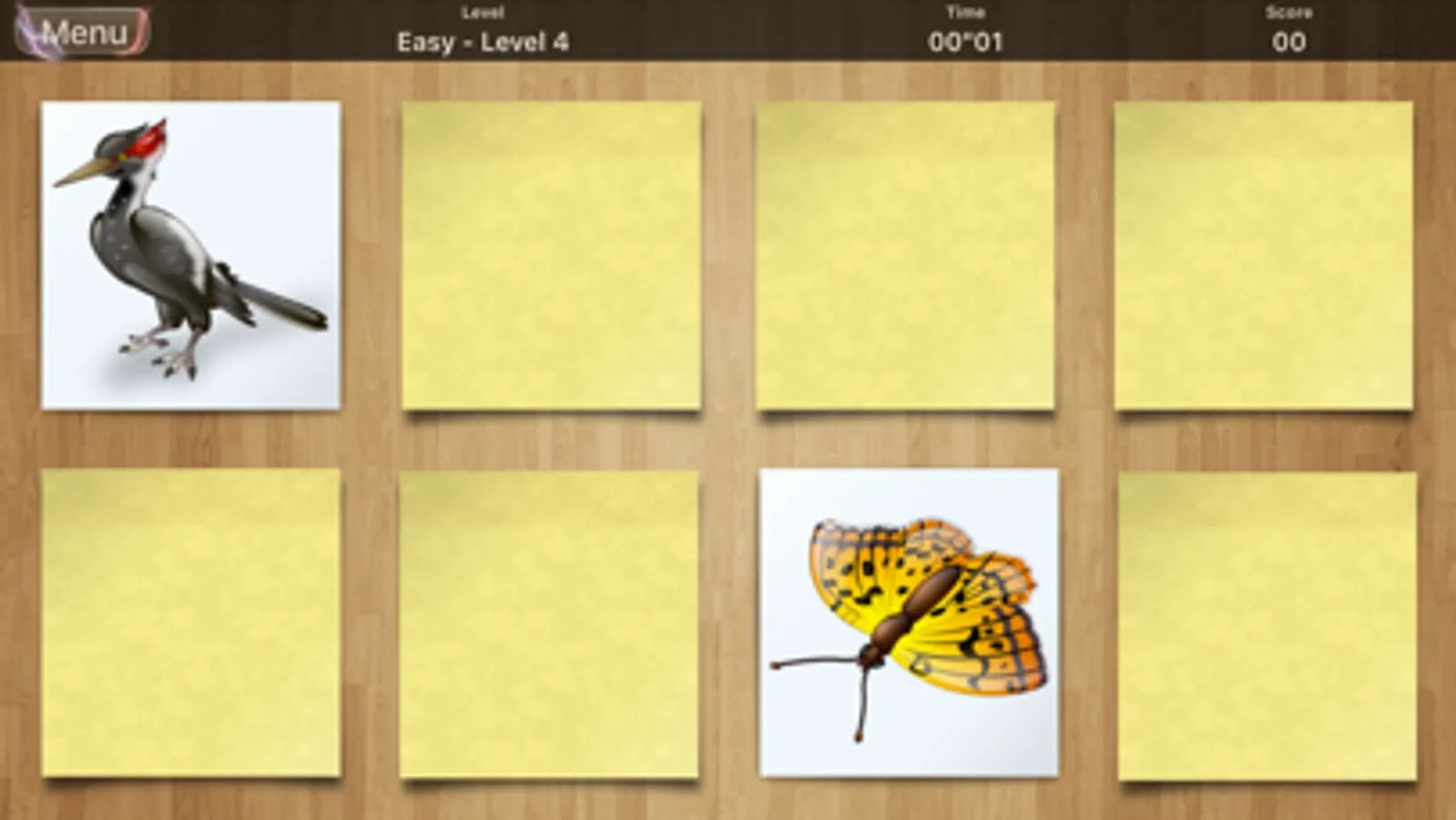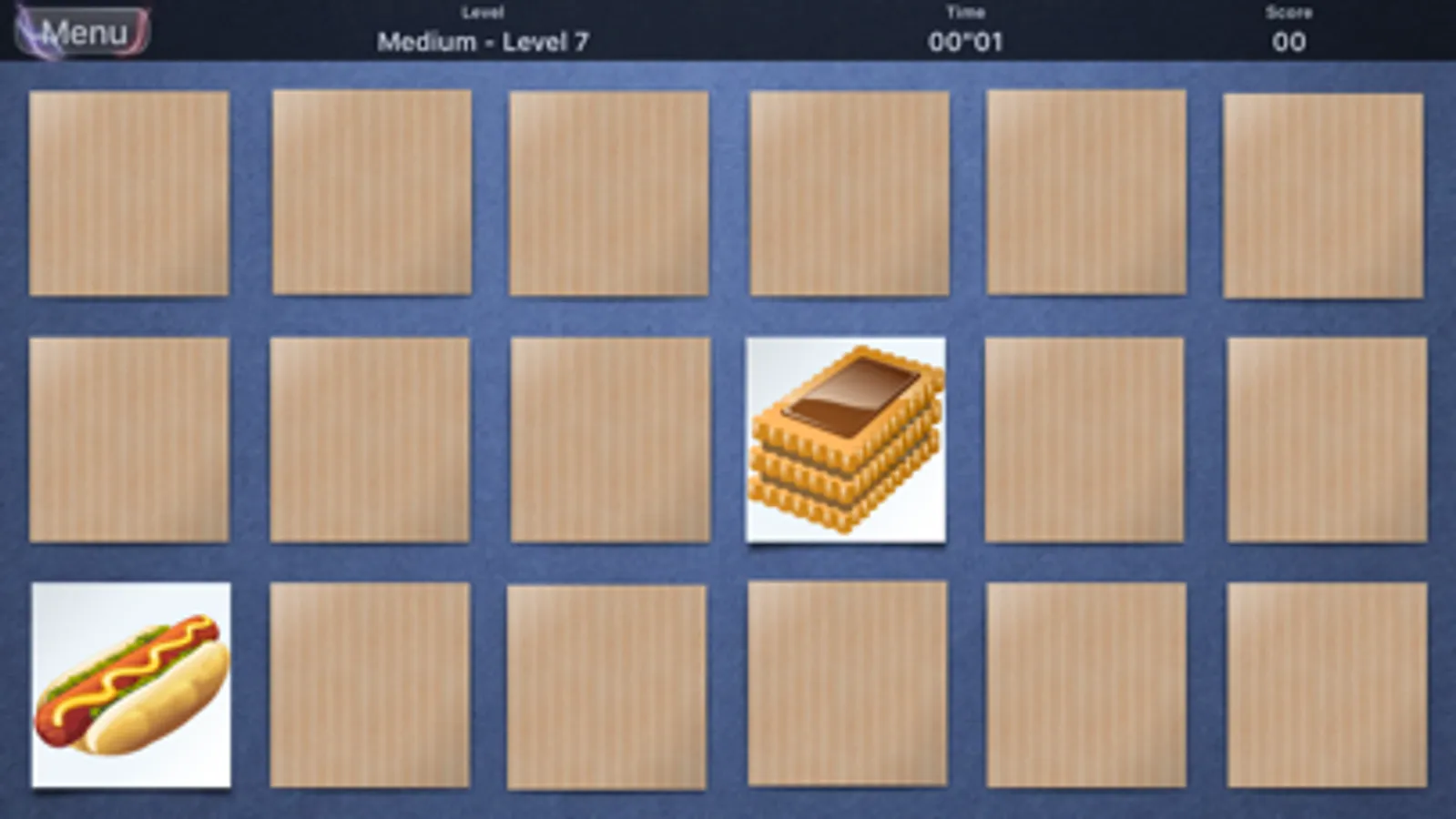 In this version for iPad, iPhone and iPod Touch, the game is composed of 5 difficulty levels and each comes with 5 levels, where images are shuffled and placed face down on the screen. The player must discover two pictures (animals or food theme), letters (you can choose upper or lower case), or numbers whether these form a pair disappear, otherwise, are again covered and remittances in their original location on the screen.