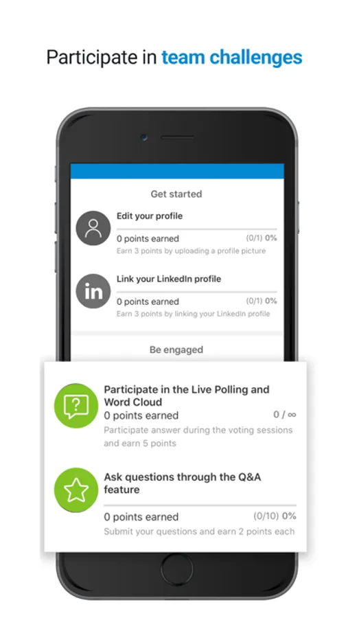 - Voting and Q&A, session comments, ARS audience response systems, gamification and photo walls.