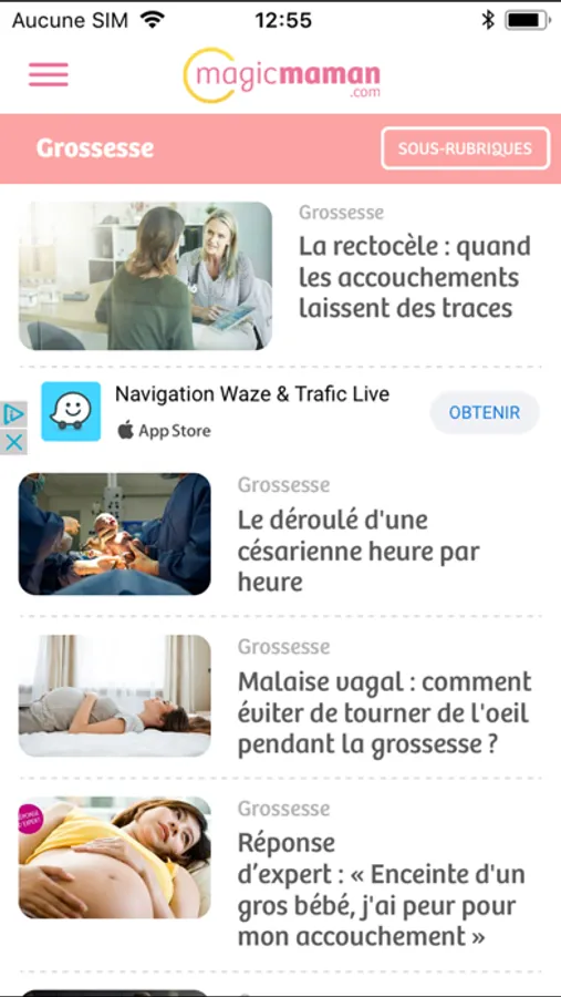 1- Les actus : Accédez à tout instant à tous les articles de magicmaman.com (grossesse, bébé, enfant, ado, école, recettes…), une véritable encyclopédie des parents à portée de main