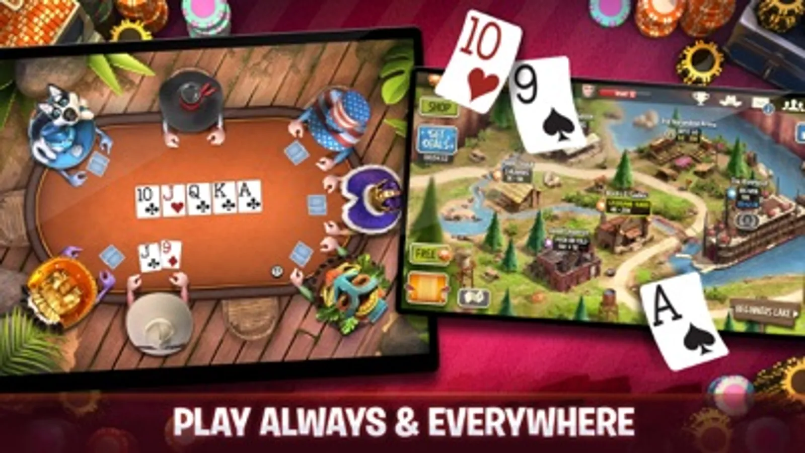 Enjoy Texas Holdem in: Cash games, tournaments, Spin & Play, Sit & Go, Royal Poker, Party Poker, friends games, Heads-up, online Blackjack 21, PVP and Wild West saloon tourneys!