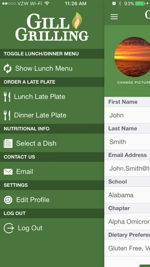 The Gill Grilling app provides menus and late plate ordering to our clients.