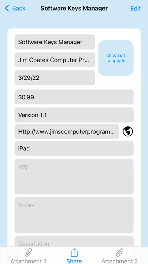 This universal app was designed to enable you to keep a record of any software license keys, serial numbers, or registration information that typically accompanies a software purchase.