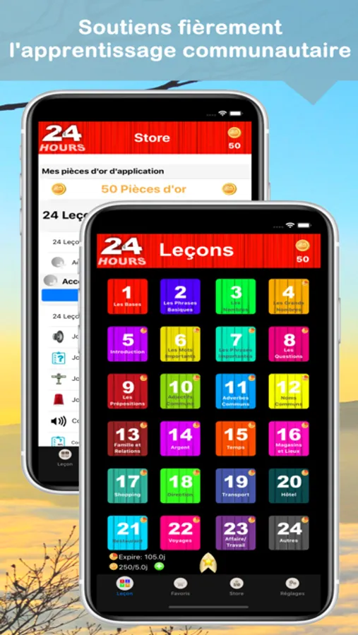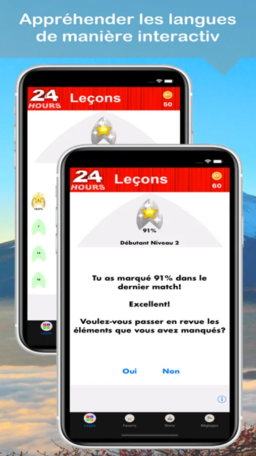 Apprendre avec notre application est gratuit avec toutes les leçons et fonctionnalités de base. Nous offrons beaucoup d'outils d'apprentissage utiles avec nos fonctions Silver+ et Gold+ qui peuvent être déverrouillées à l'aide de pièces d'or gagnées dans l'application ou avec un abonnement annuel à renouvellement automatique pour vous aider à apprendre encore plus vite tout en s'amu-sant davantage !