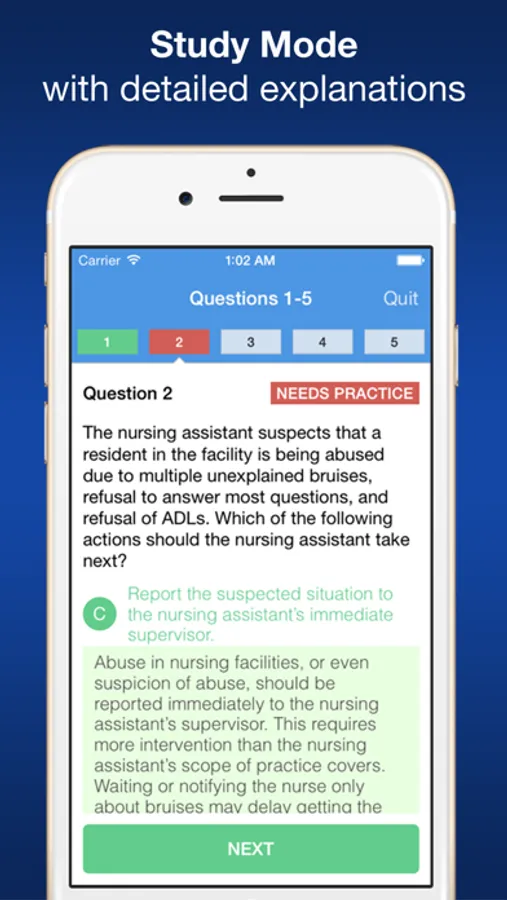 Our team of education professionals has crafted challenging practice questions and detailed explanations. 36 study units cover all the categories you need to practice for your CNA state certification exam: