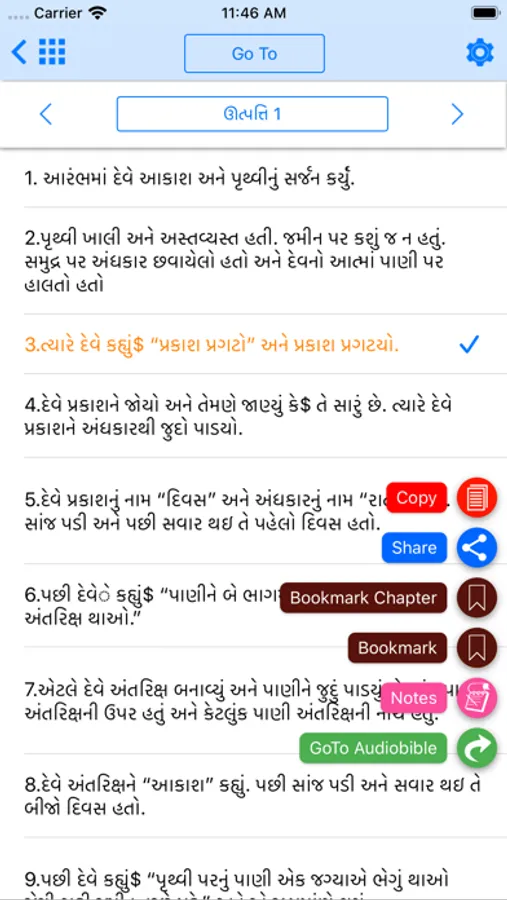 We are proud and happy to release Gujarati Bible in iOS for free. This app contains both "Old Testament" and "New Testament" in Gujarati. This is our first effort in bringing you Bible in Gujarati. We have included several features such as Bookmark, Search for a verse, Jump to another chapter from one chapter, jump to another book from one book, share the content on Facebook, Twitter, send the selected verse through SMS, etc. We sincerely hope that this app will rejoice you.