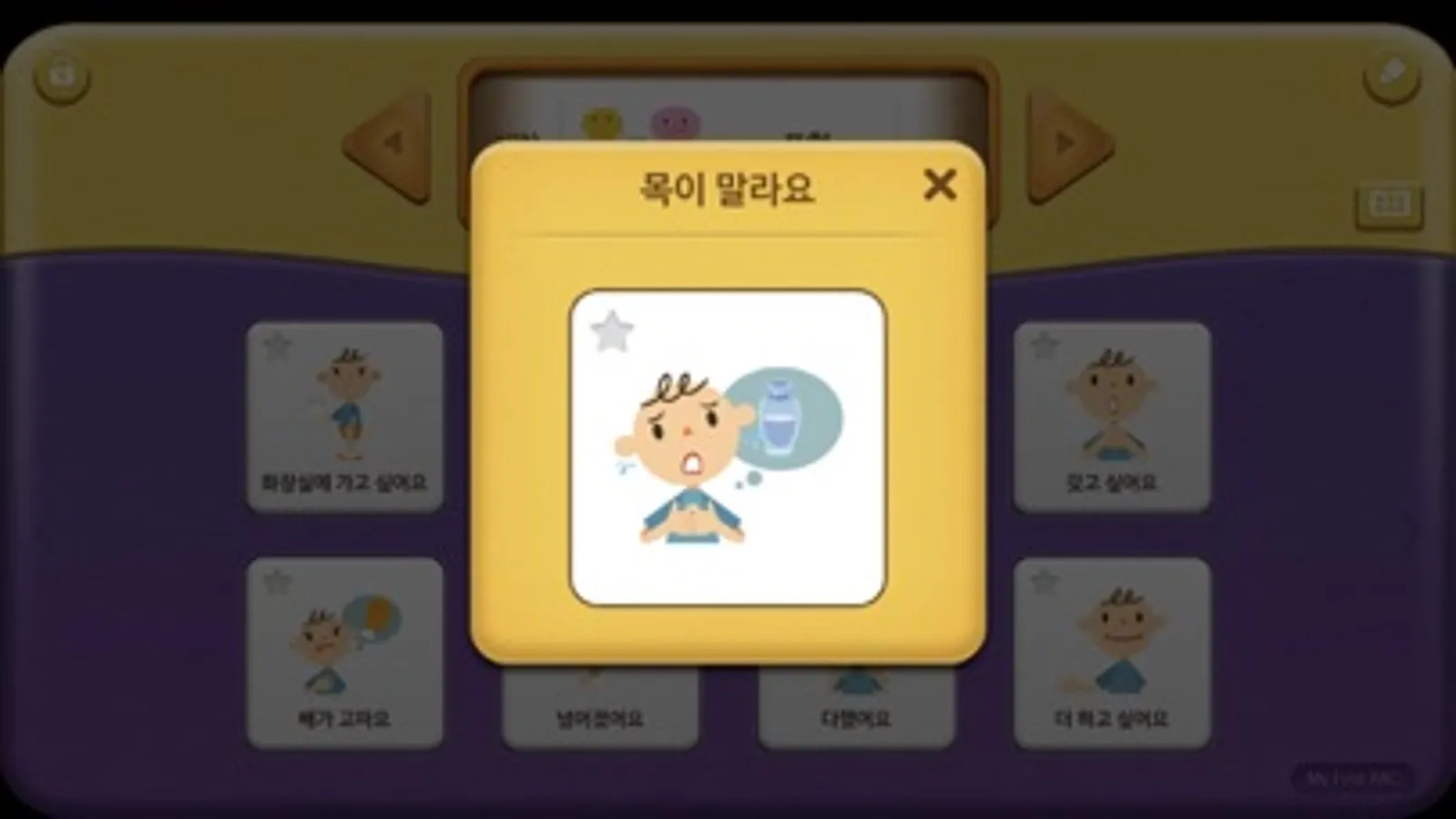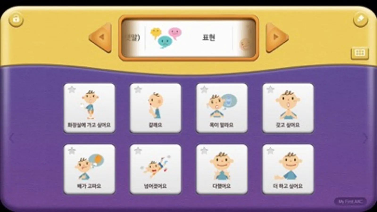 My First AAC는 언어로 의사 소통이 어려운 아동, 그 중에서도 말을 처음 배우기 시작하는 나이(만 2세~5세)의 장애 아동들이 보다 쉽게 세상과 대화하도록 의사소통을 지원해 주는 소프트웨어입니다. 엔씨소프트문화재단은 한국어에 적합한 의사소통 지원 소프트웨어에 대한 기초 연구를 통해 만 2세~5세 언어장애 아동들이 직관적으로 사용할 수 있는 터치 기반 소프트웨어를 제작, 무료로 배포하고 있습니다.