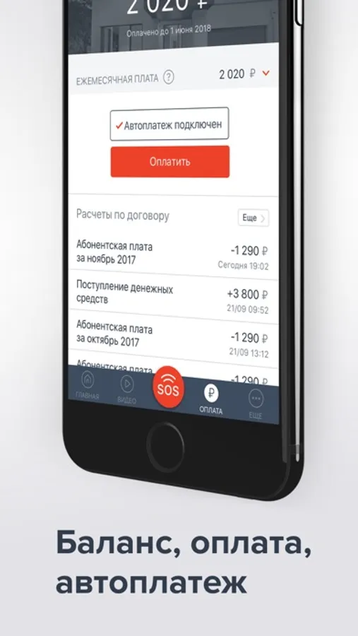 • Проверка баланса и оплата услуг, подключение автоплатежа