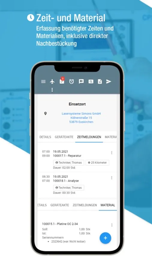 - Auftragszeiterfassung für Serviceaufträge bzw. Serviceeinsätze