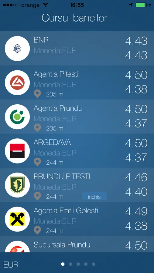 Aplicatia de curs valutar pentru toate bancile din Romania. Contine lista tuturor sucursalelor din Romania, iar cursul valutar contine 15 monezi diferite.