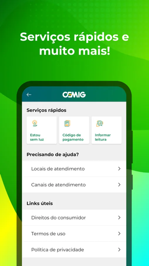 Descrição completa: Acesse o aplicativo Cemig Atende. Pague suas contas com Pix, peça segunda via, informe que está sem luz e muito mais!
