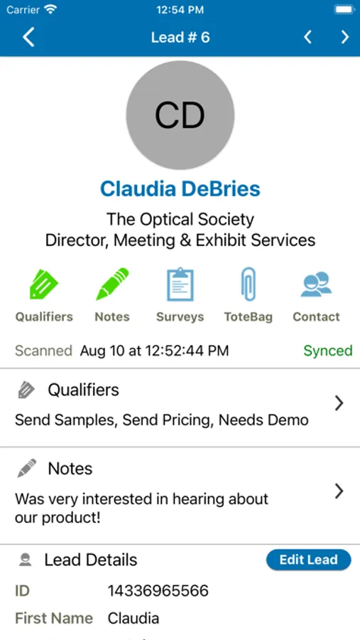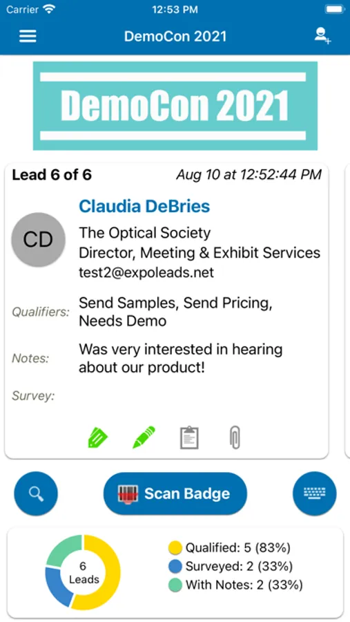 - Capture leads by scanning the badge or entering the ID number in manually.