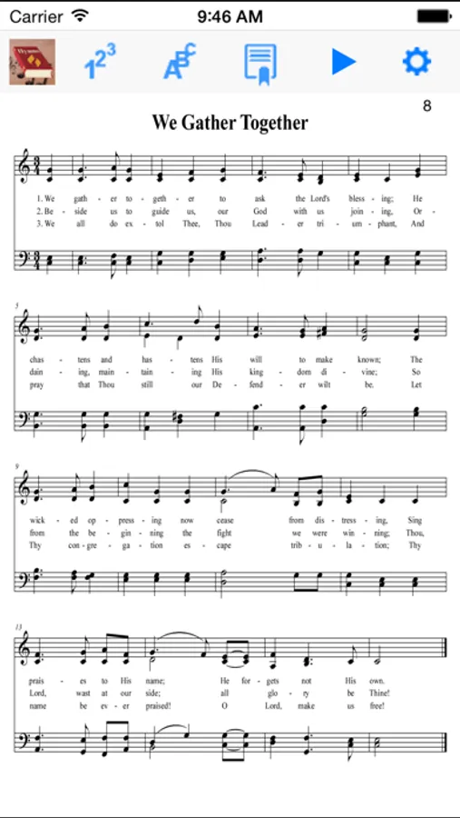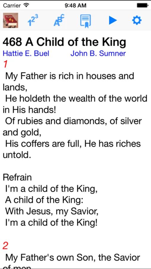 • Quickly jump to a hymn by entering the hymn number