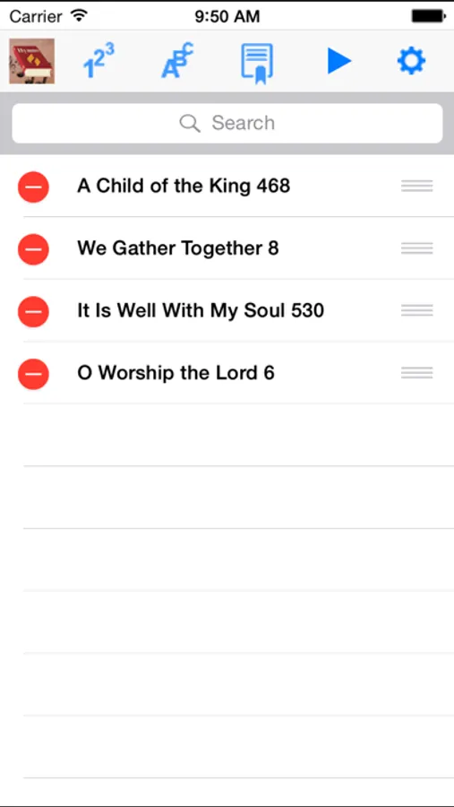 • Easy search capability for song title, first line, or song number