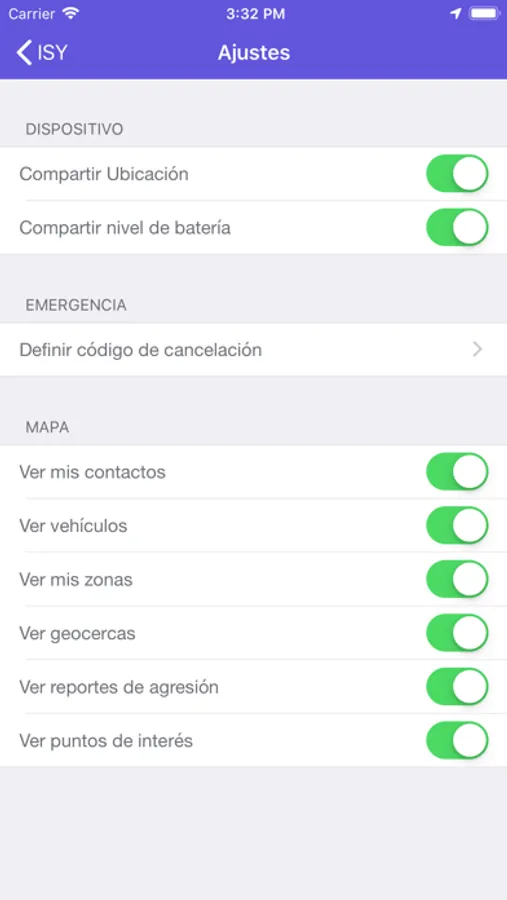 Isy actualiza tu ubicación cuando recorres una distancia de 50 metros, la permanencia estática no utilizará el GPS un vez enviada la ubicación.