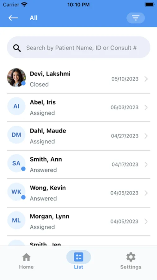 - View cases based on status