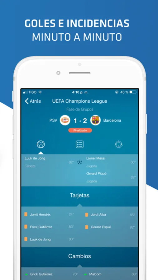 Minute to minute results of soccer matches worldwide, notifications of goals, schedules, standings and much more!