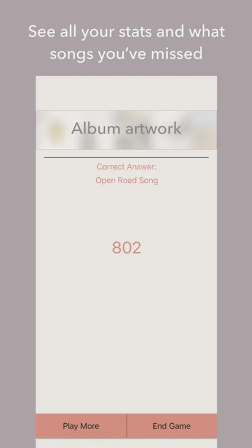 • Different quiz types. Choose between: Song, Artist, Album, or Shuffle.