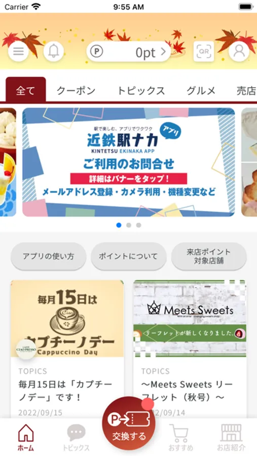 アプリ内で貯めたポイントをクーポンに交換でき、お得にお店でご利用いただけます。