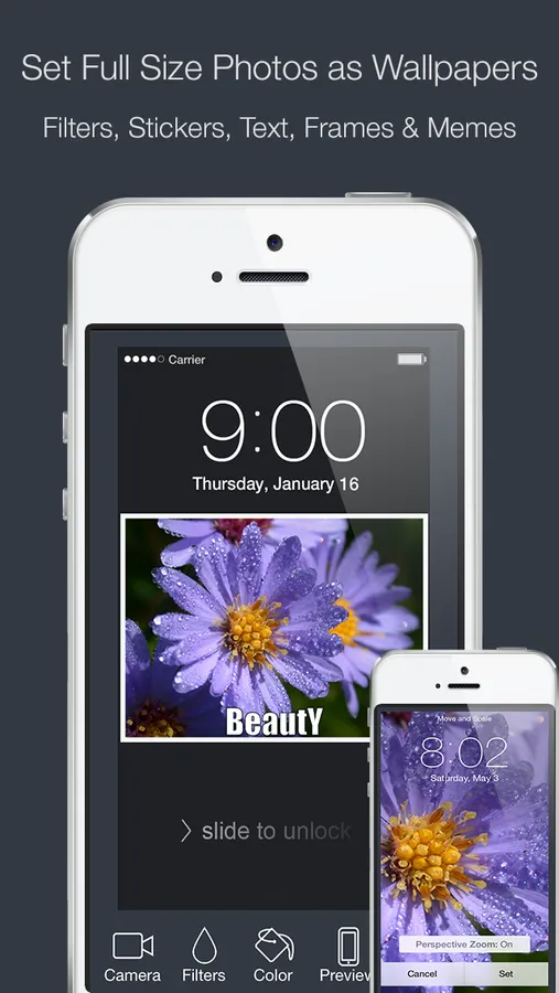 You want full control? No problem, InstaWall will let you zoom, scale and position you images and photo for complete custom wallpapers and background.
