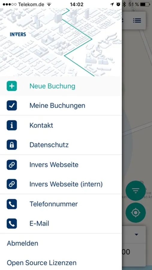 INVERS RoundTrip ist der Carsharing Provider zur Verwaltung der internen Flotte für dienstliche wie auch private Fahrten. Mitgliedern ist es möglich, Standorte und deren Fahrzeugbelegung einzusehen sowie Reservierungen zu platzieren. Reservierte Fahrzeuge können mittels "Virtual Key" von der App aus geöffnet und auch wieder verschlossen werden. Weiterhin ist es möglich, z.B. die Reservierungshistorie einzusehen oder Kostenschätzungen für geplante Fahrten zu erhalten.