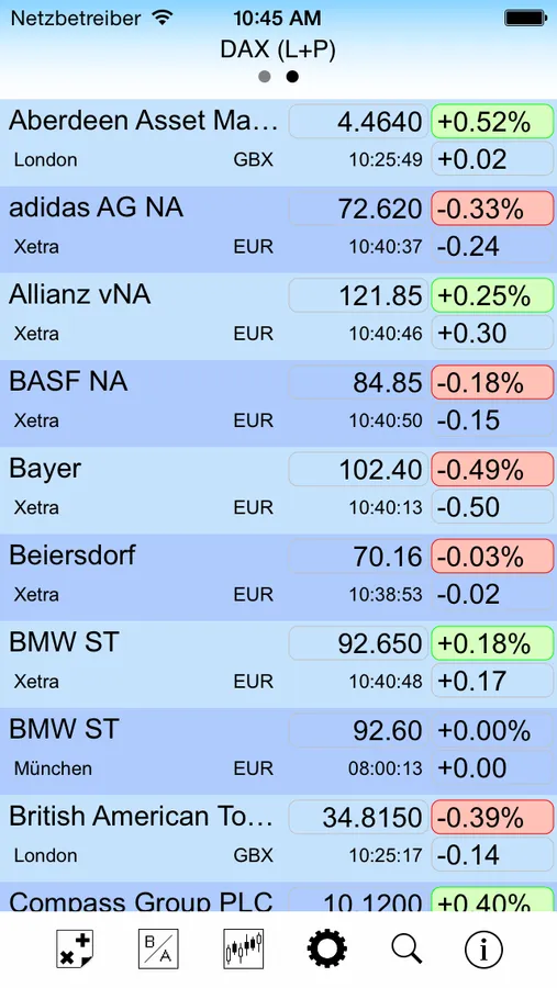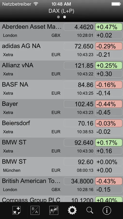 Behalten Sie mit Hilfe Ihrer Watchlisten auch unterwegs alle wichtigen Börsen und Wertpapiere im Blick – Indizes, Aktien, Optionsscheine, Zertifikate, Futures, Devisen und Rohstoffe.