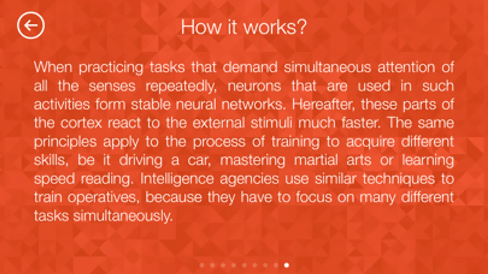 Intelligence agencies use similar techniques to train operatives, because they have to focus on many different tasks simultaneously.