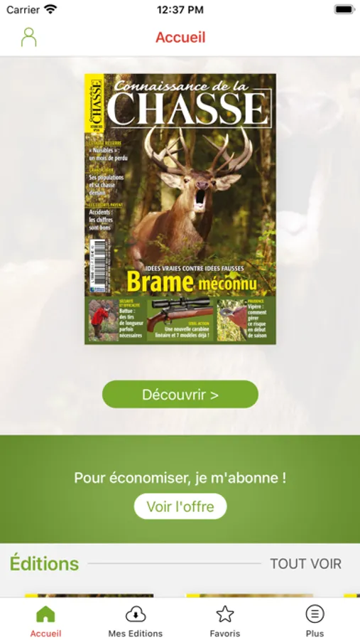Téléchargez gratuitement l’application du magazine Connaissance de la Chasse qui vous permettra d'acheter les versions numériques, enrichies de vidéos, de photos et de textes. Retrouvez également les anciens numéros ainsi que les hors-séries thématiques.