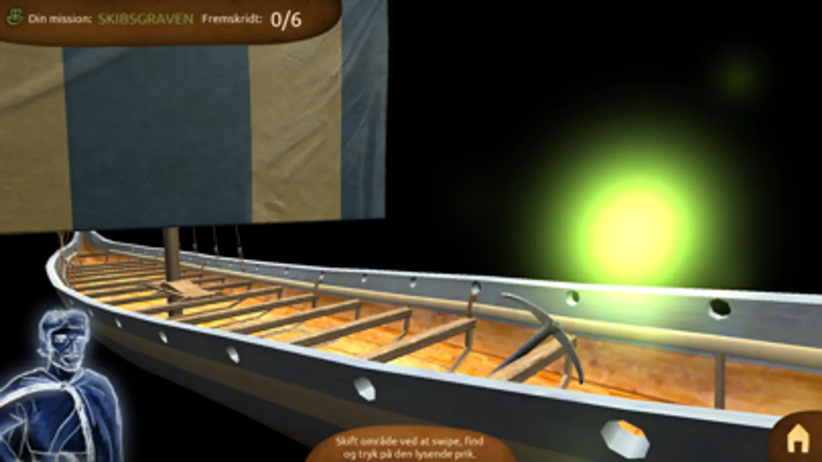 Vikingekongens grav er en interaktiv opdagelsesjagt på fortidens hemmeligheder, som giver dig mulighed for at lære mere om Ladbyskibet og dets mange mysterier. Du kan løse fire missioner: Begravelsen, Udgravningen, Skibsgraven og Indbruddet.