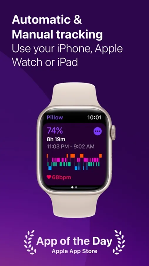 Sleep trouble? Sleep better with Pillow, your smart sleep assistant. Pillow can analyze your sleep cycles automatically using your Apple Watch, or you can use Pillow without an Apple Watch by placing your iPhone or iPad on the mattress near your pillow.