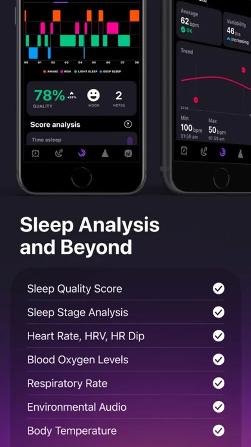 - Advanced sleep cycle analysis algorithm based on the latest scientific findings in sleep research.