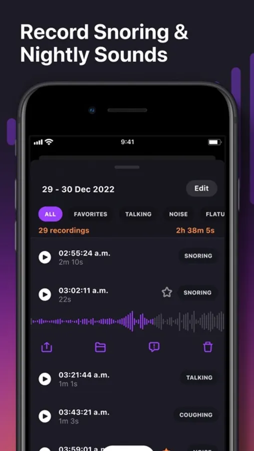 - Synchronize and backup your sleep data and audio recordings between your devices.