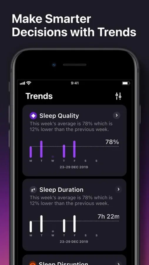 - Analyze your sleep cycles and find the best time to fall asleep.