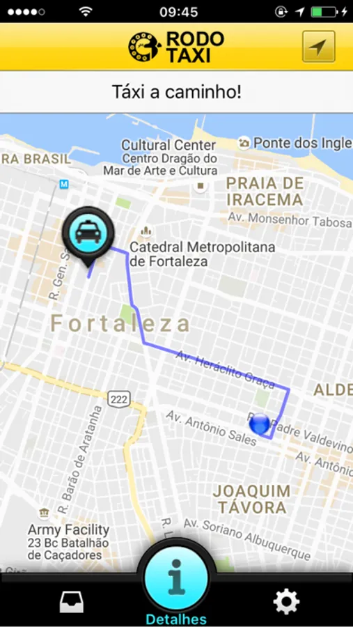 A RodoTaxi permite que você chame um táxi em Fortaleza de forma rápida e gratuita e ainda possa acompanhar a chegada do táxi pelo mapa.