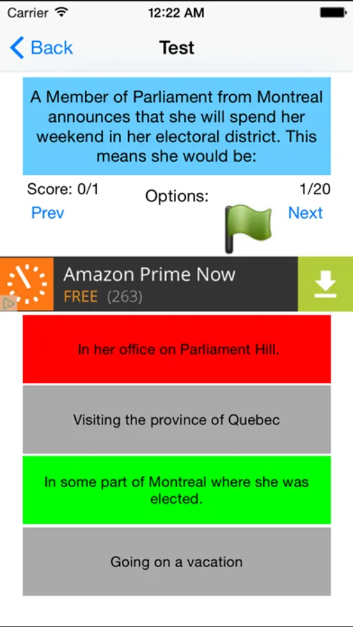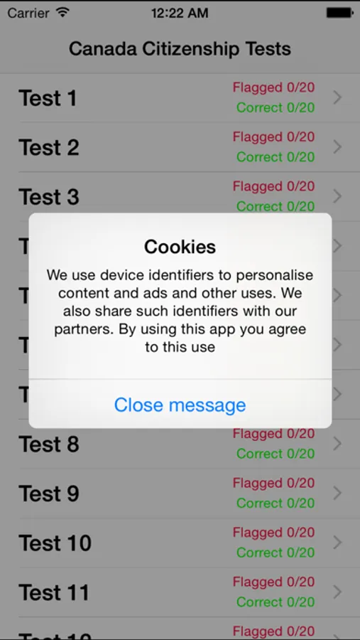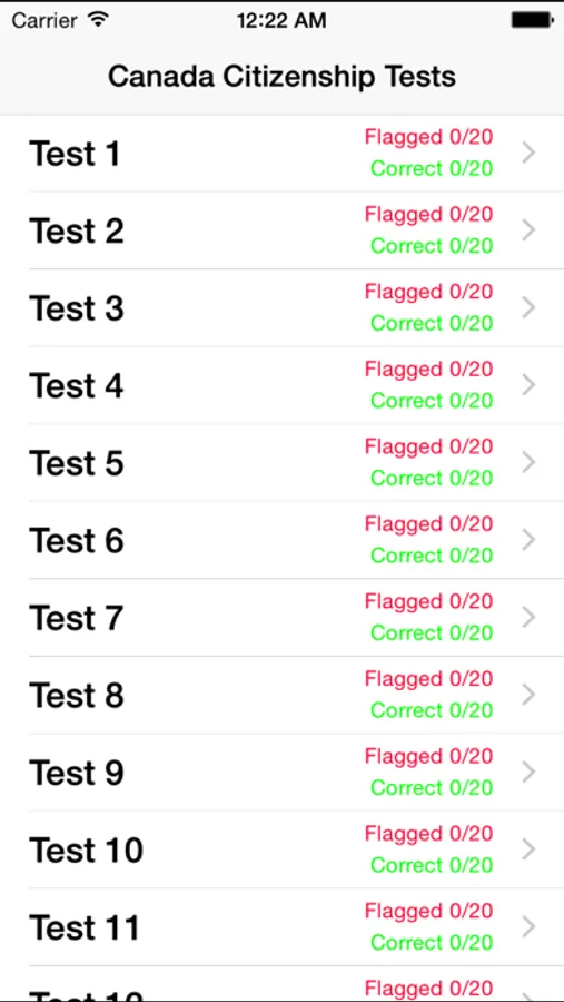 The App helps you get more than 28 tests - each of 20 questions. You can flag questions! It also shows how many questions you have answered correctly in each test.