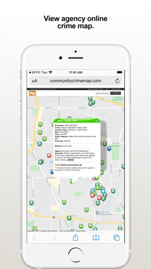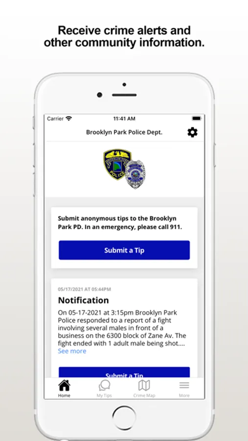 The BPPD Tips app provides citizens the ability to submit anonymous tips to Brooklyn Park, MN Police Department. The app also displays agency crime alerts, online crime map, and other agency web and social media content.