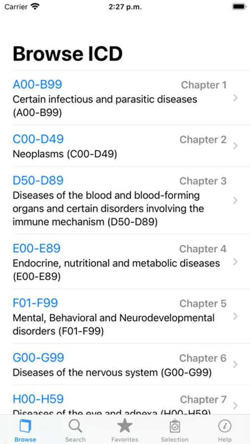 - Browse codes by chapters and subgroups.