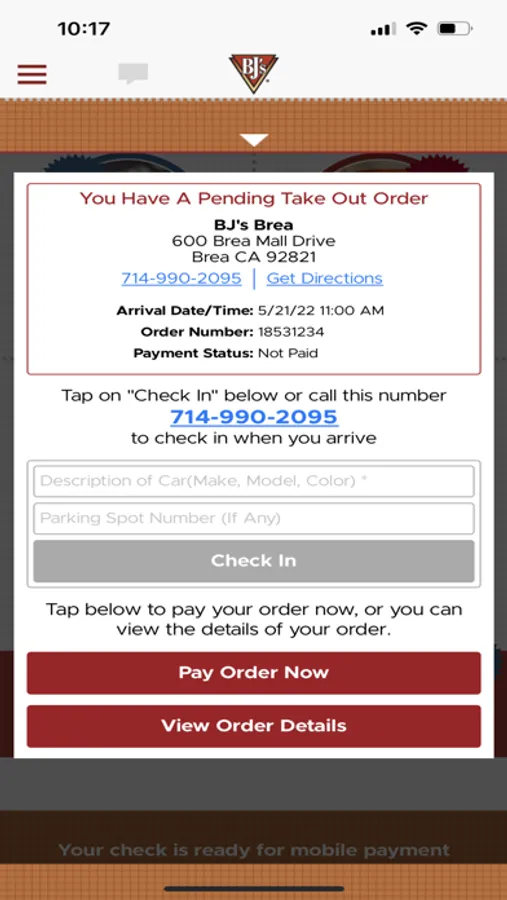 • Order take out! Place your order in advance right from the app and pick up inside. In some locations, we’ll even bring it out to you with our curbside service.