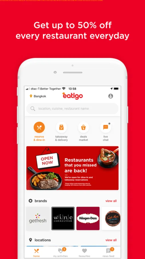 Eatigo is a restaurant reservation app which offers time-based discounts of up to 50% off, every day at all of its 4500+ restaurants. There are no pre-payments or hidden cost, eatigo is 100% free. It’s simple to use: search, reserve, enjoy!
