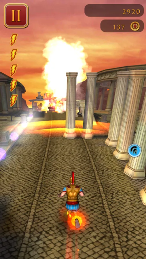 As Gaius runs he collects Empire Coins out of the air while simultaneously dodging objects.