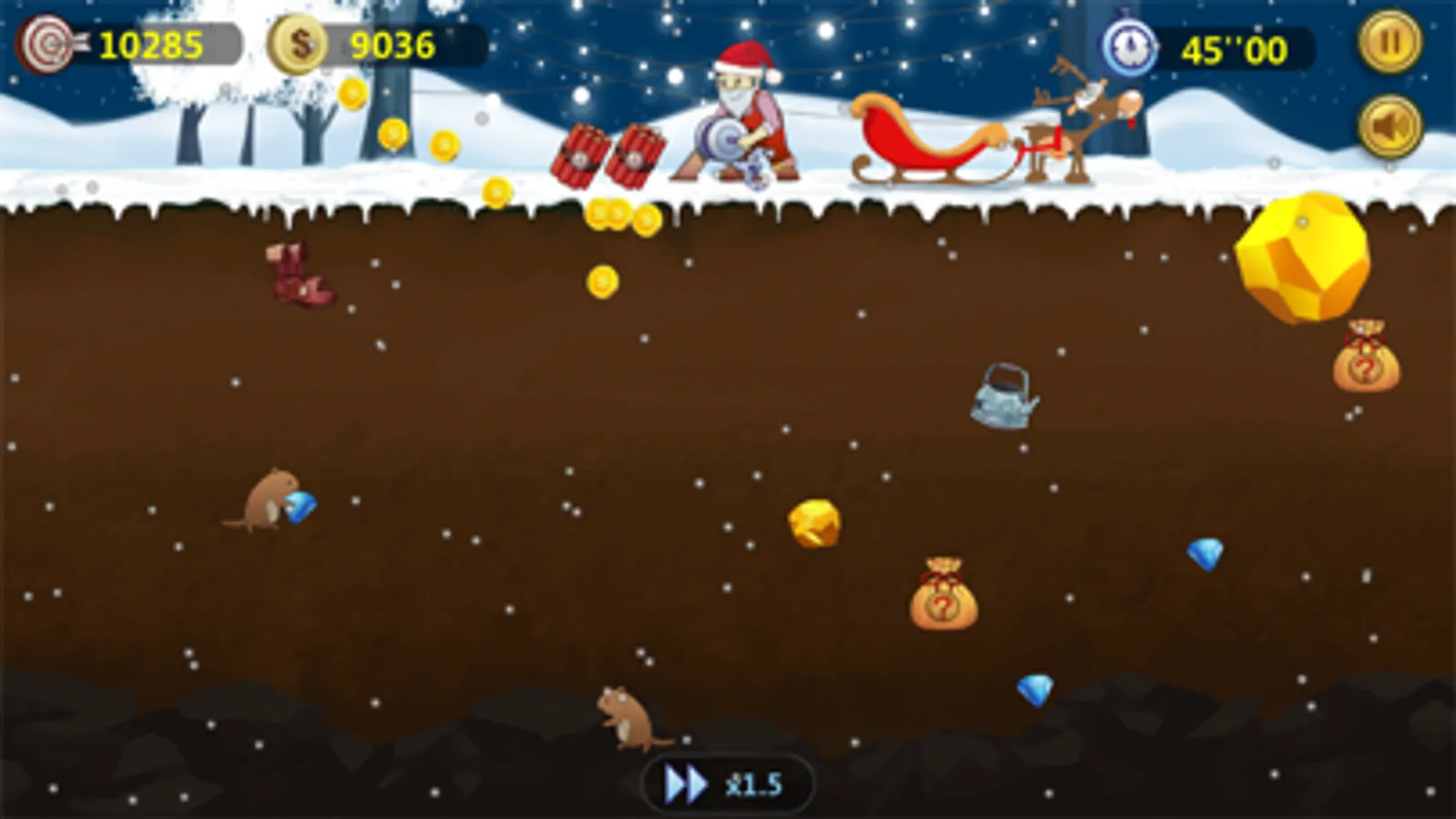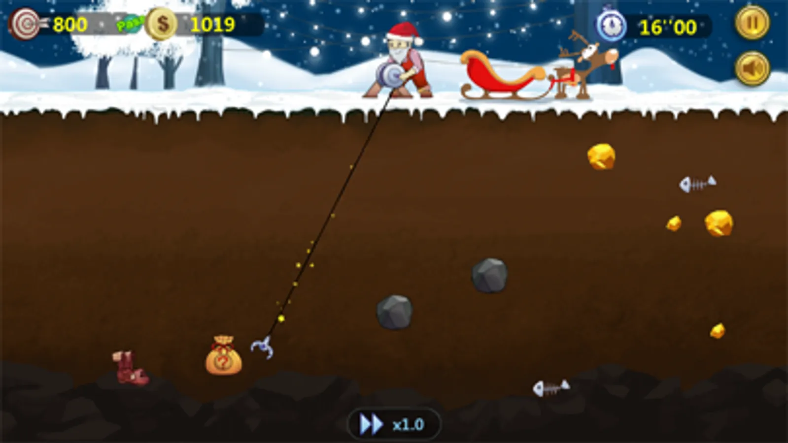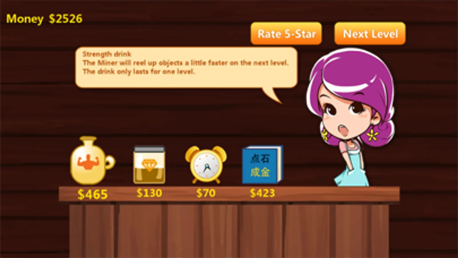 This is Gold Miner Classic version, Use your claw and reel to mine gold and other treasures out of the earth. Your claw will swing back and forth. Tap screen to lower it. Once it has grabbed something it will reel it up. Heavy objects like rocks and large pieces of gold will be harder to reel up. Grab bags contain random amounts of money, a strength power-up, or a stick of dynamite. Between levels you can buy items that can help you.