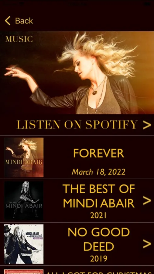 The official Mindi Abair iPhone application is your one-stop source for all things Mindi. Stay up to date with the latest news, tour dates, photos, videos and more, straight from Mindi.
