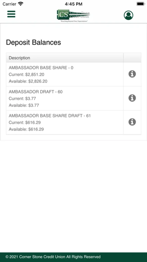 Available to all Corner Stone Credit Union Internet Banking users, the App uses the same industry standard security technologies as our online banking. Simply use your Corner Stone Credit Union Online Banking Login and Password. If you don't yet have a Login or Password just visit us at www.cornerstonecreditunion.net to enroll.