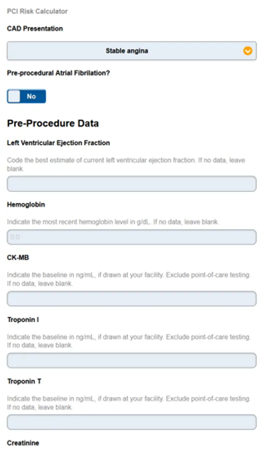 SCAI has teamed up with the BMC2 Registry to create the SCAI PCI Risk Calculator will allow users to use one common tool to make a pre-procedure assessment of post-PCI risks including: