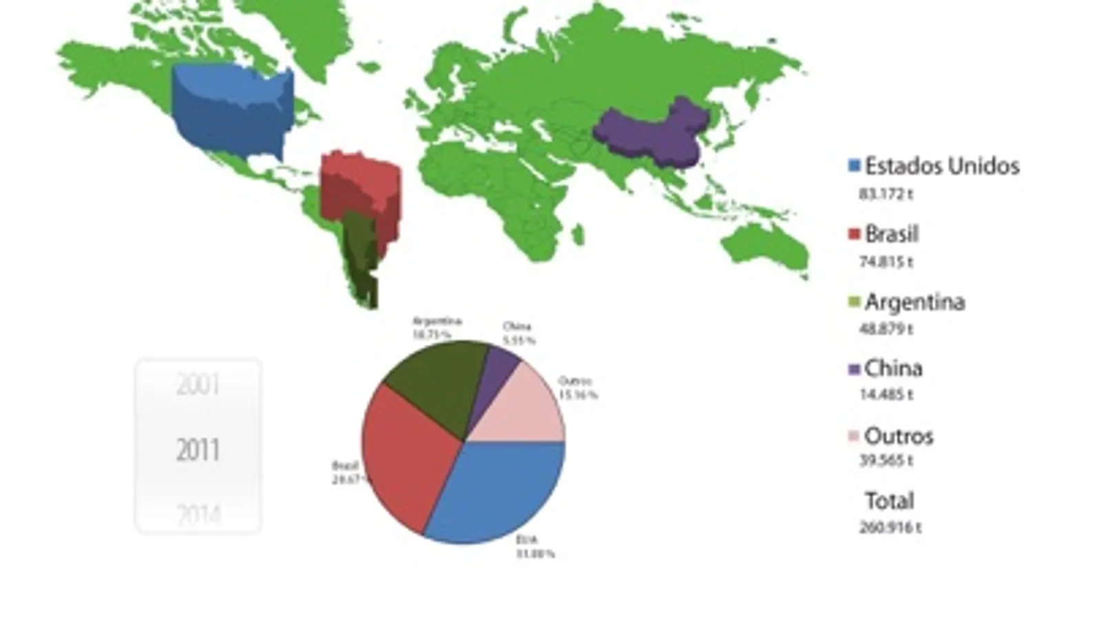 Soja em Números é uma iniciativa da Embrapa para tornar os dados da cultura da soja mais acessíveis e didáticos. Foram desenvolvidos gráficos interativos a partir de dados disponibilizados por várias instituições, cujos créditos estão destacados na lateral de cada gráfico. As informações podem ser usadas livremente, desde que citados os créditos das instituições geradoras dos dados e da adaptação feita pela Embrapa Soja. Para citar corretamente, informe “Dados: cite o crédito da lateral do gráfico / adaptado por Embrapa Soja”.