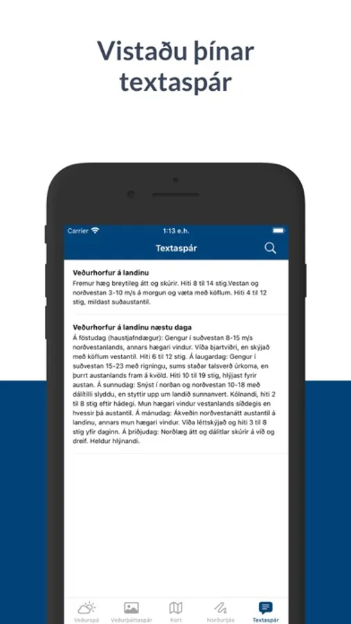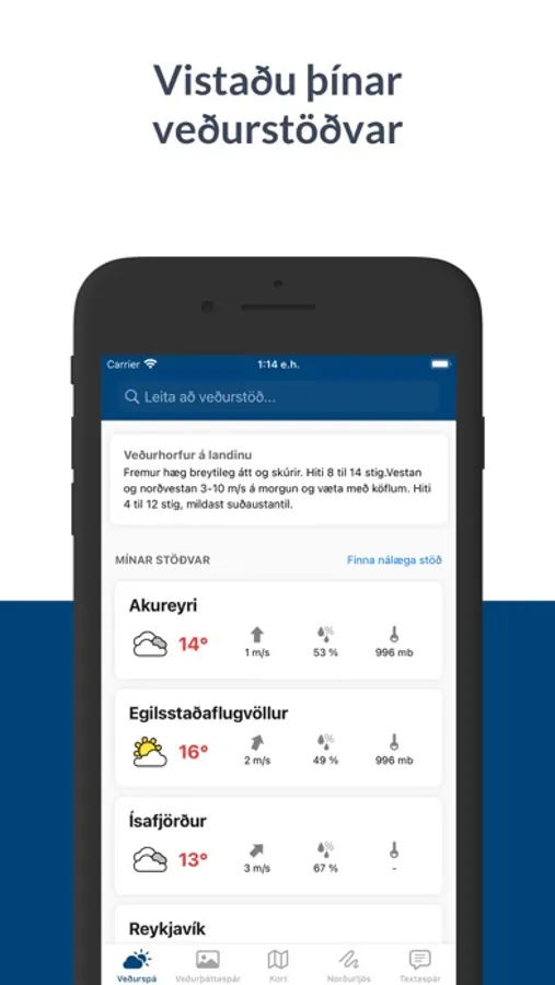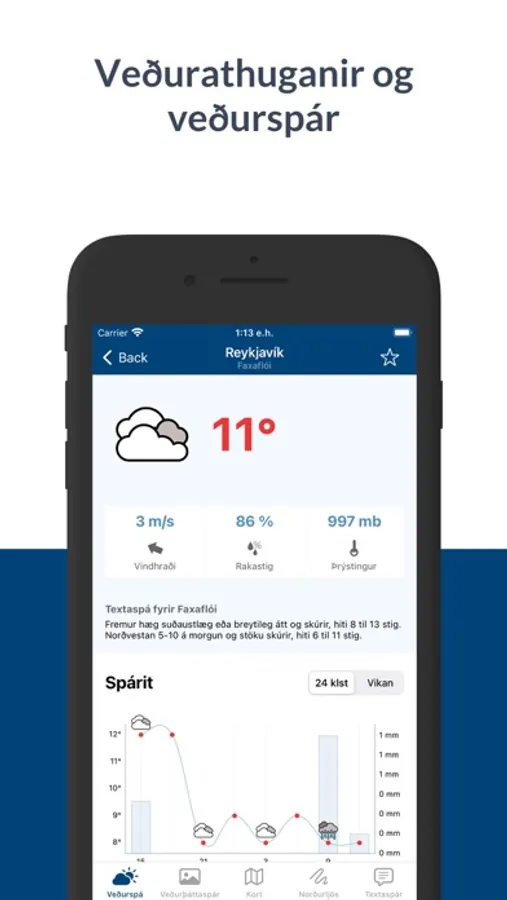 Veðrið á Íslandi færir þér veðurspá og fleiri upplýsingar frá Veðurstofu Íslands á þægilegu formi.