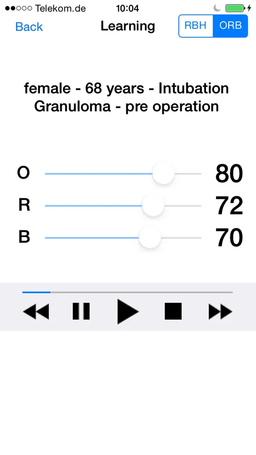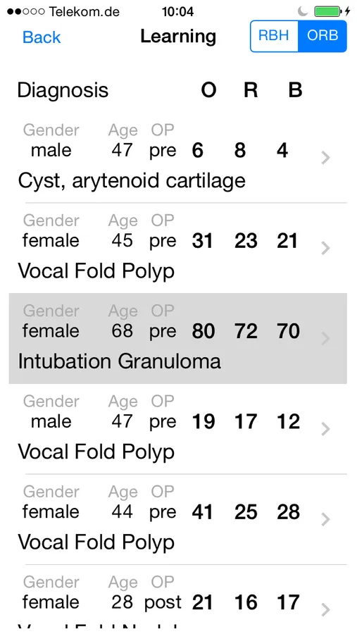 Learn and practice a correct voice RBH(overall severity[hoarseness], roughness, breathiness) assessment as part of GRBAS. This app offers sound samples of different types of voice disorders and different RBH degrees. All samples are rated by experts. Learn how experts rate RBH and practice self - become a real expert.