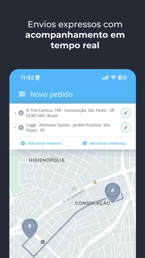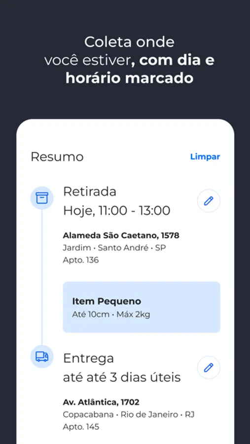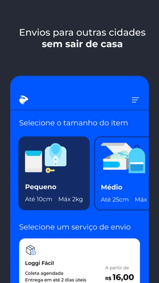 A Loggi é a solução mais completa de envios rápidos para você e para sua empresa. Não importa se é pra perto ou pra longe, se é um envelope ou uma caixa grande, se é urgente ou se dá para agendar (pagando mais barato) - a Loggi atende a todas as suas necessidades de envios, e você nem precisa sair de casa.